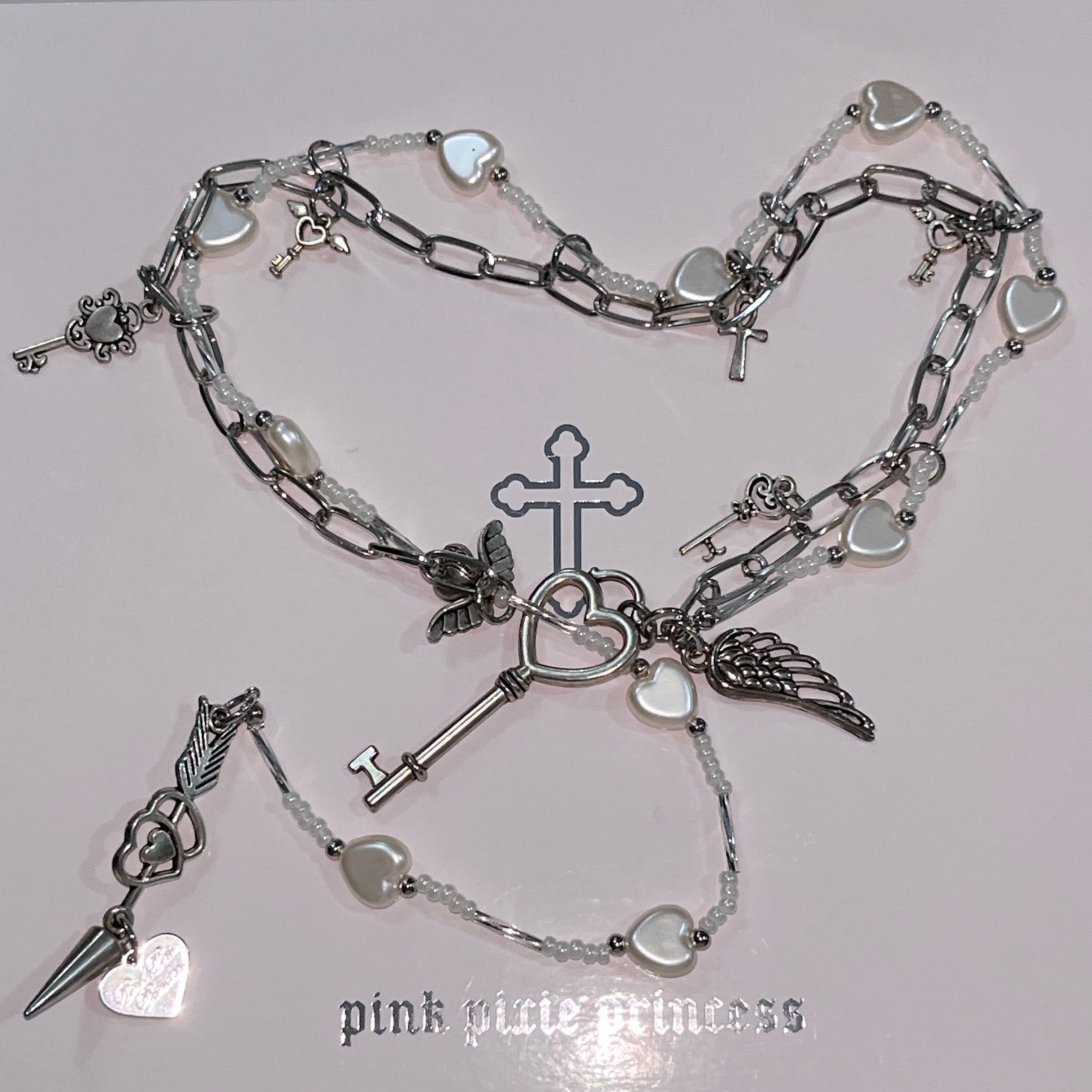 4目はピンクハートリボンネックレスと重ね付けしております♡