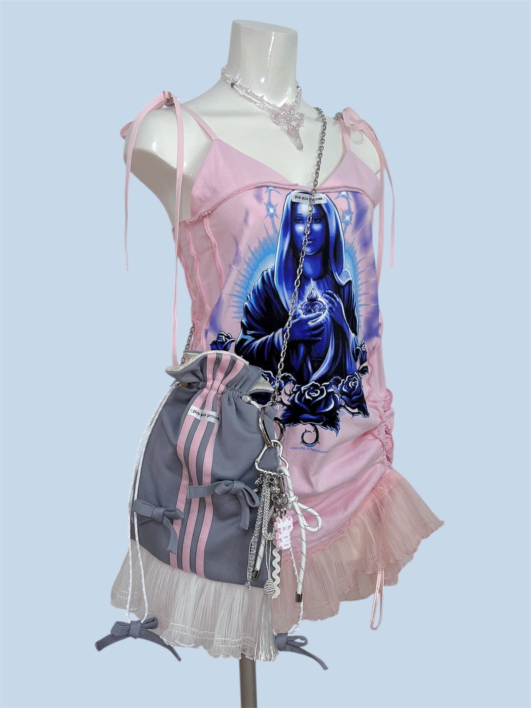 PPP REMAKE frill ribbon shoulder bag / gray × pink