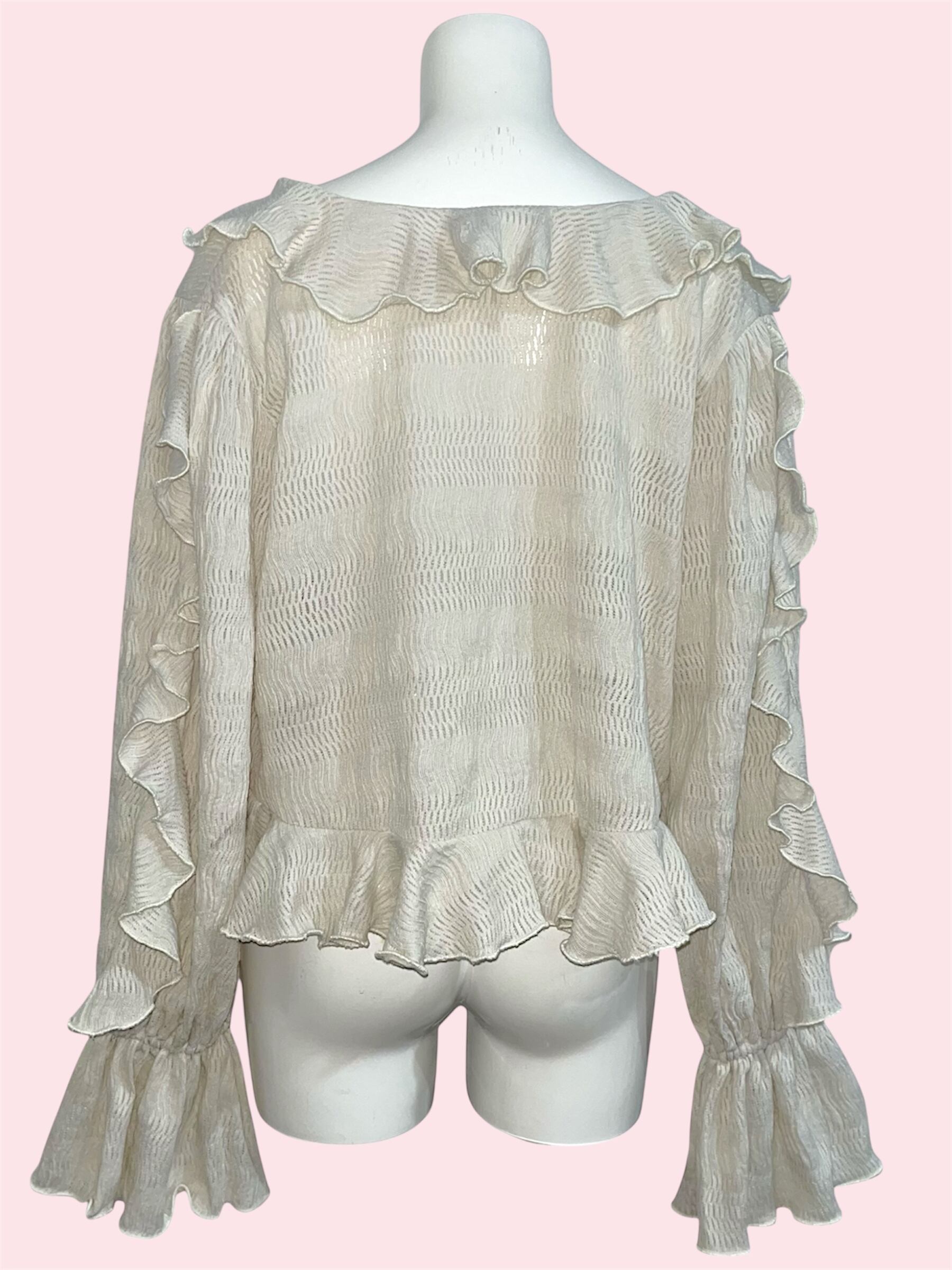 やわらかなコットン混ニット素材で仕立てた、フリルたっぷりのクロップドブラウス。