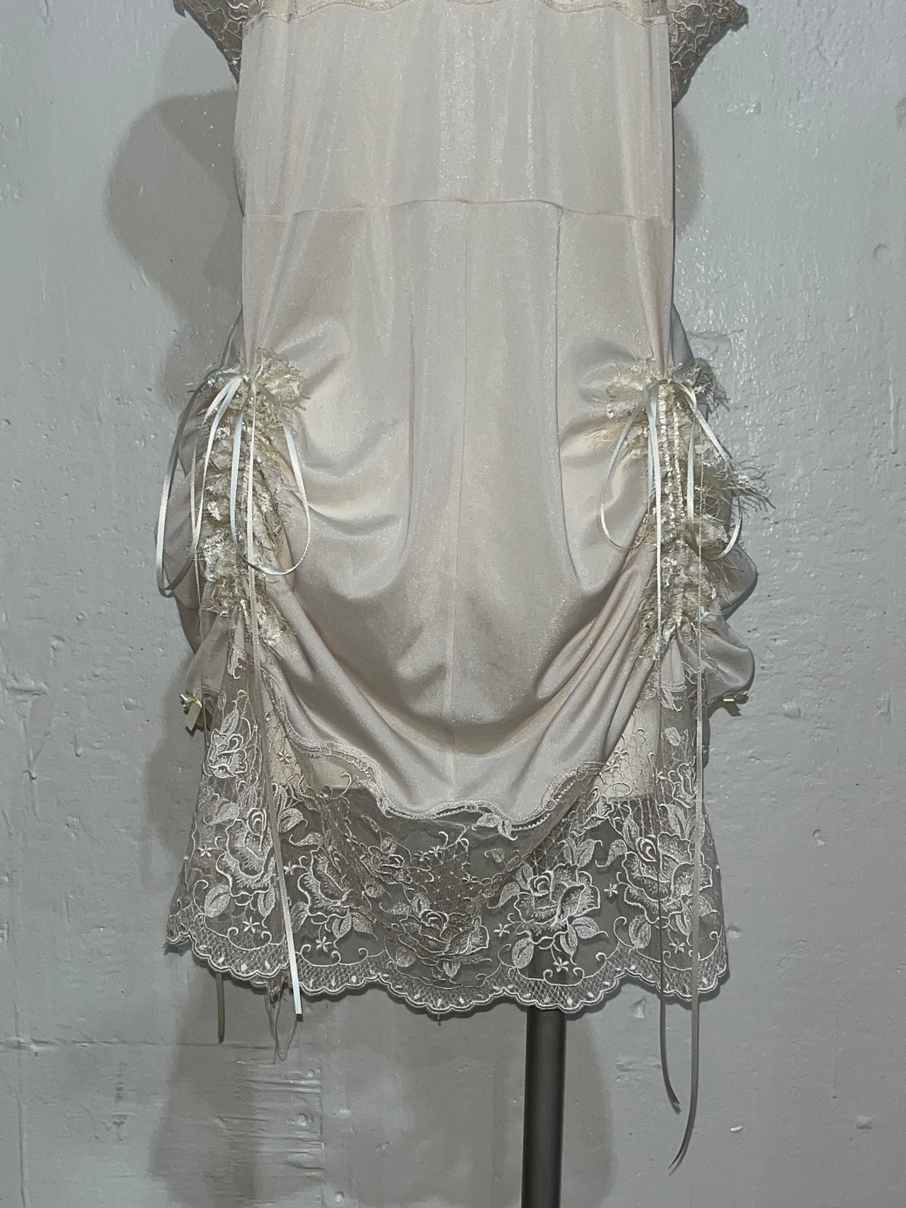 (胸の三角部分から裾レースまで)70cm〜