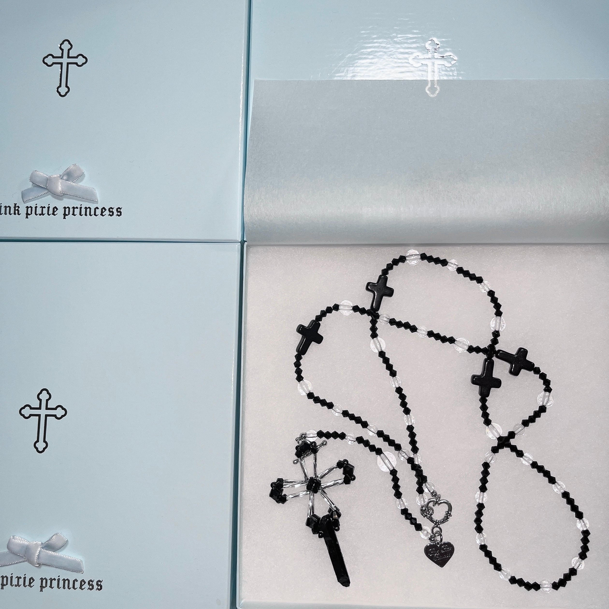 PPP jesus rosary necklace / black × silver