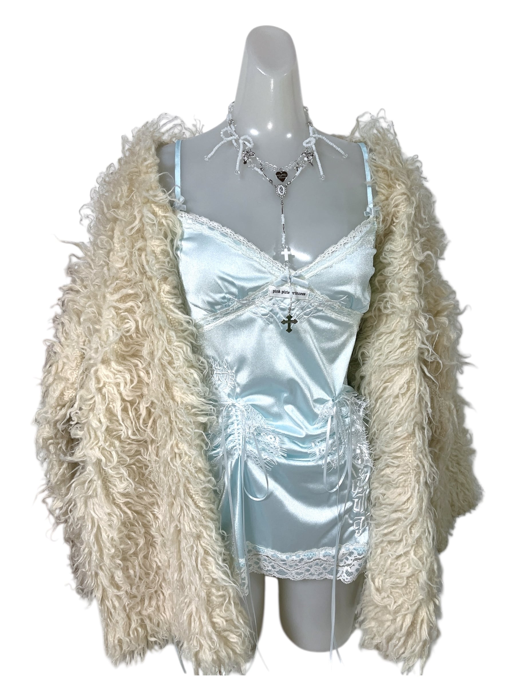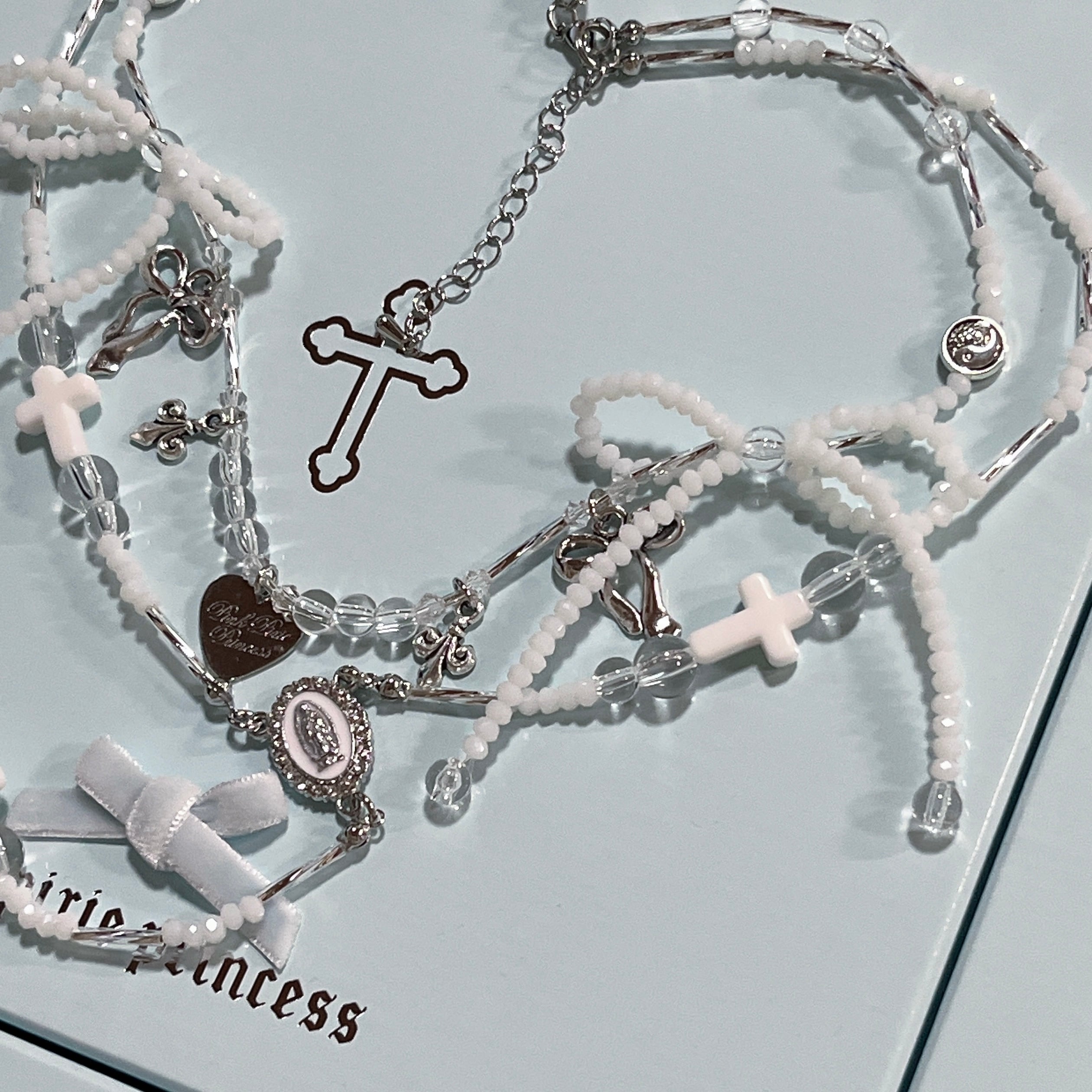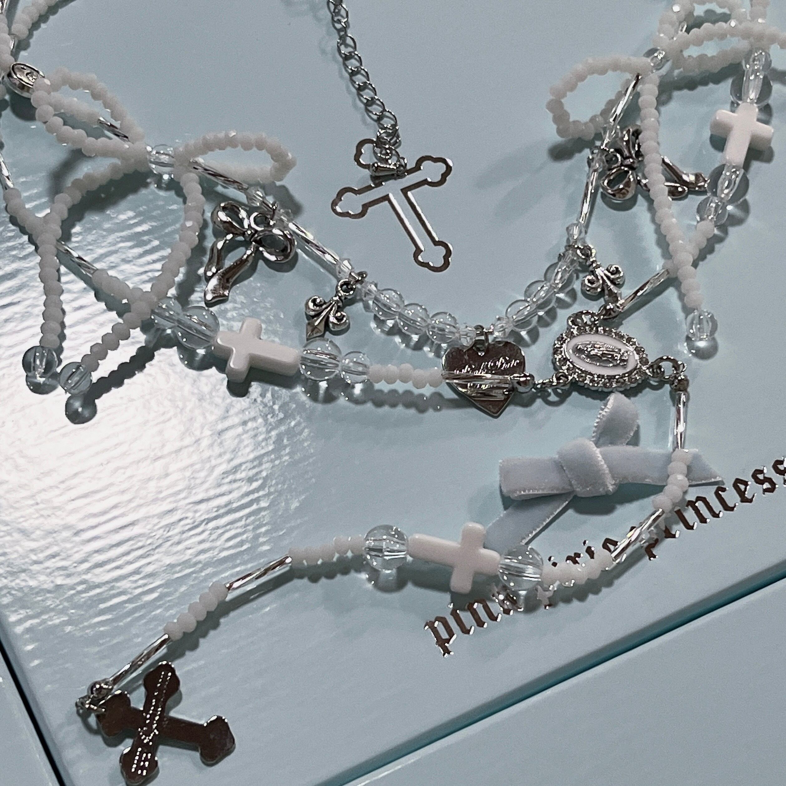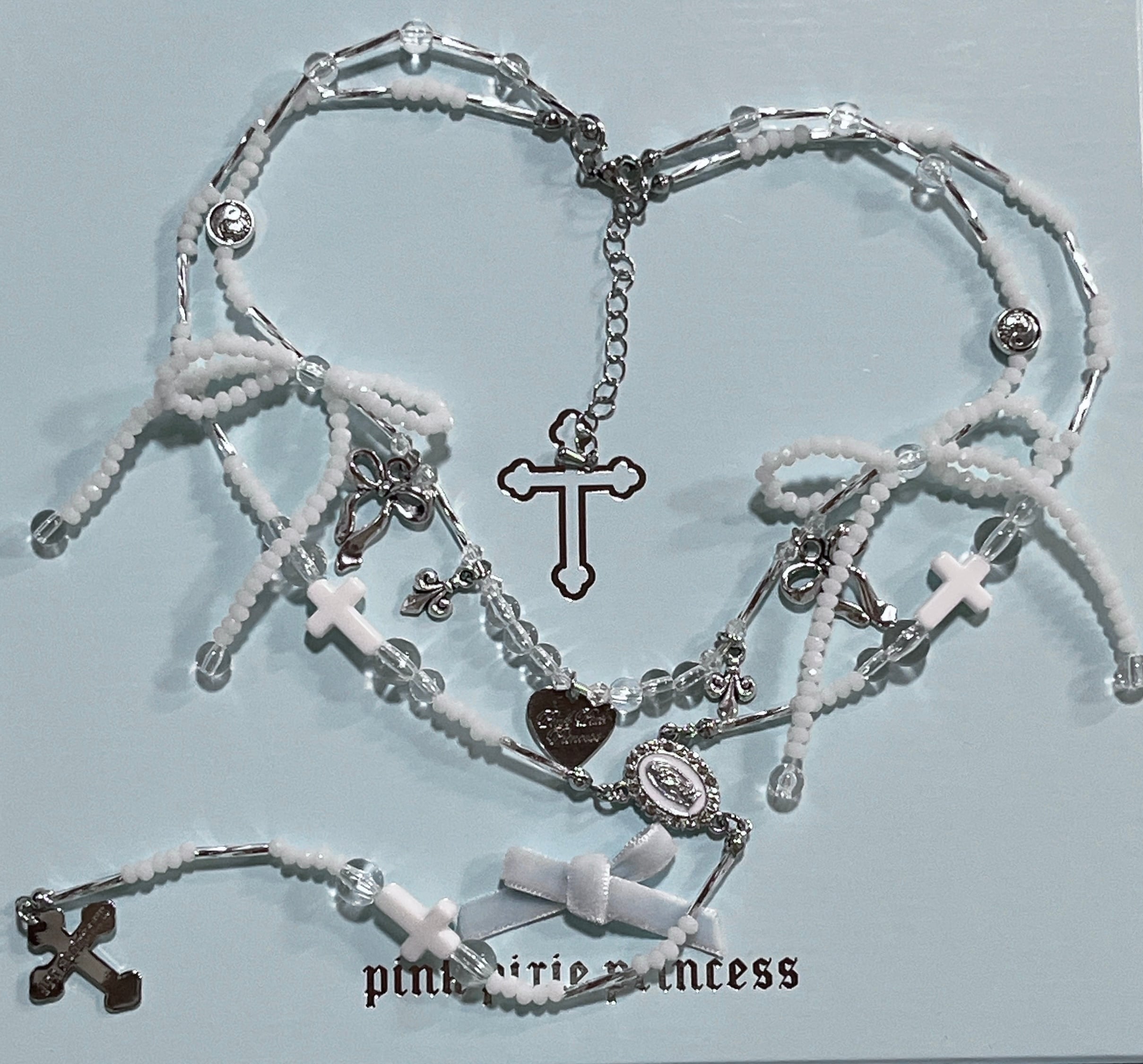 PPP ribbon rosary logo heart necklace / white