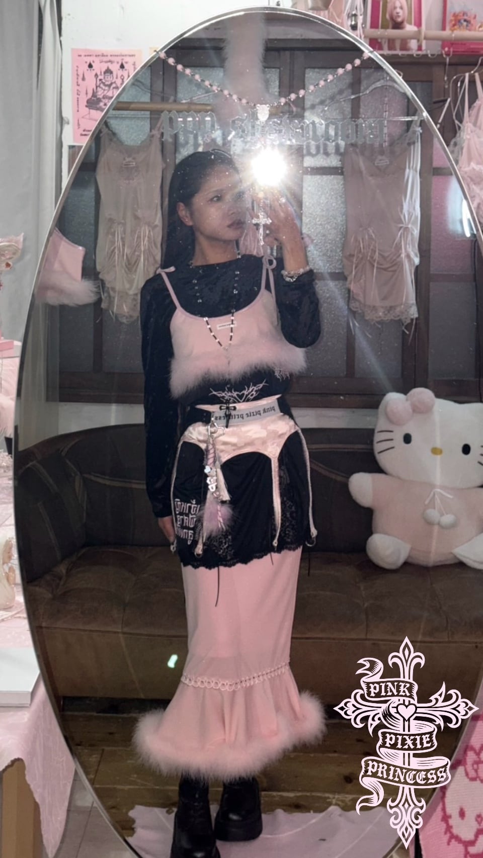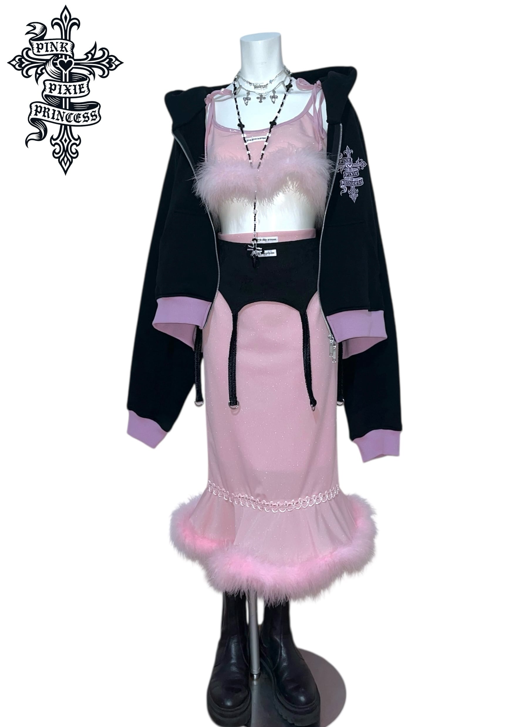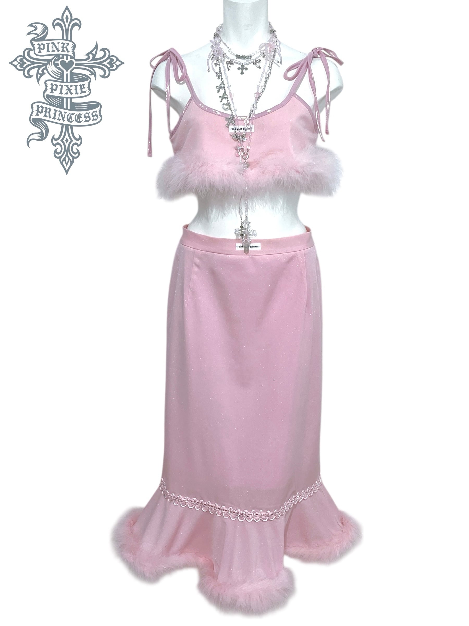 【予約商品】PPP Pink Glitter Feather Trim Skirt
