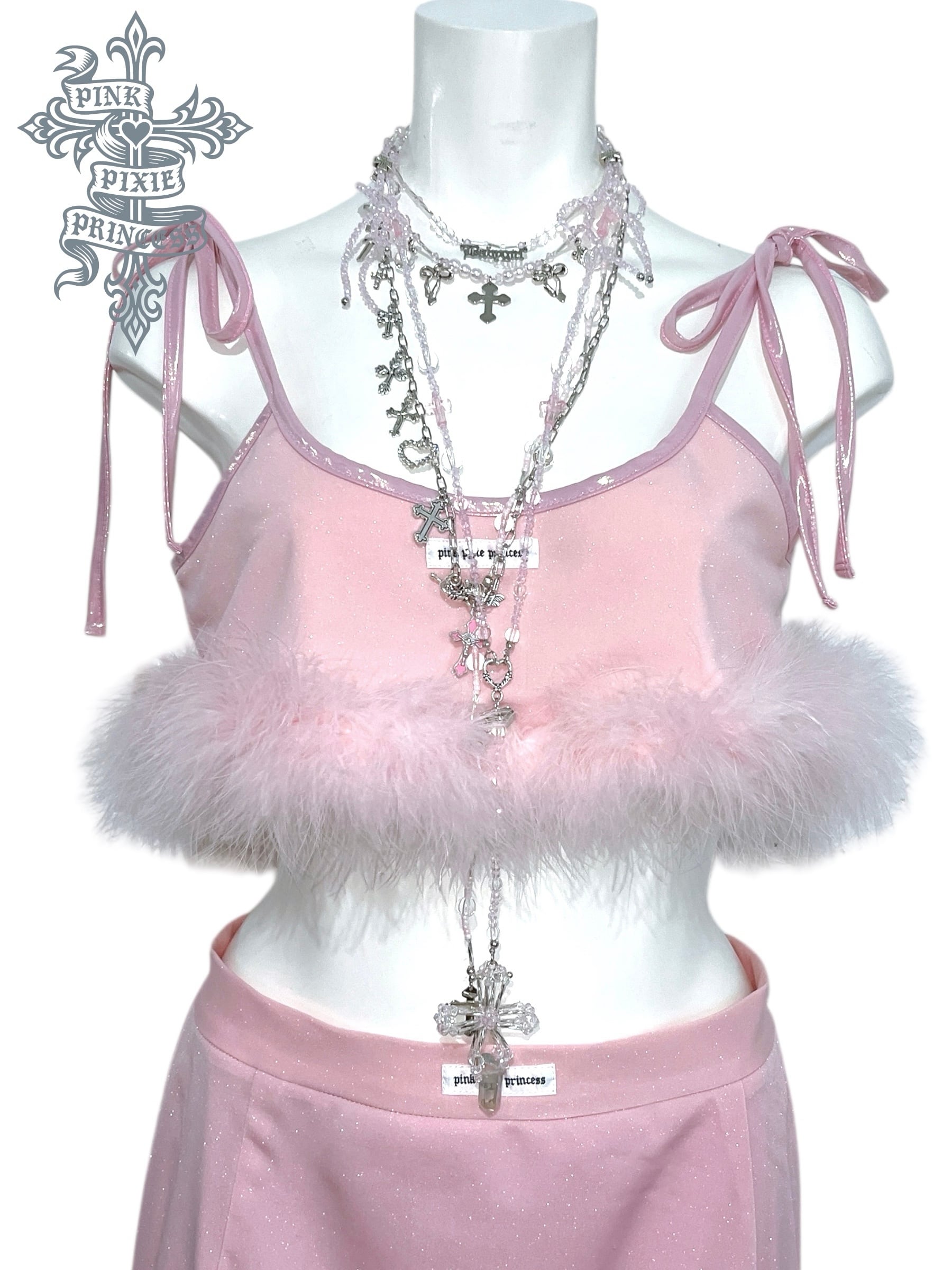 【予約商品】PPP Pink Glitter Feather Trim Camisole