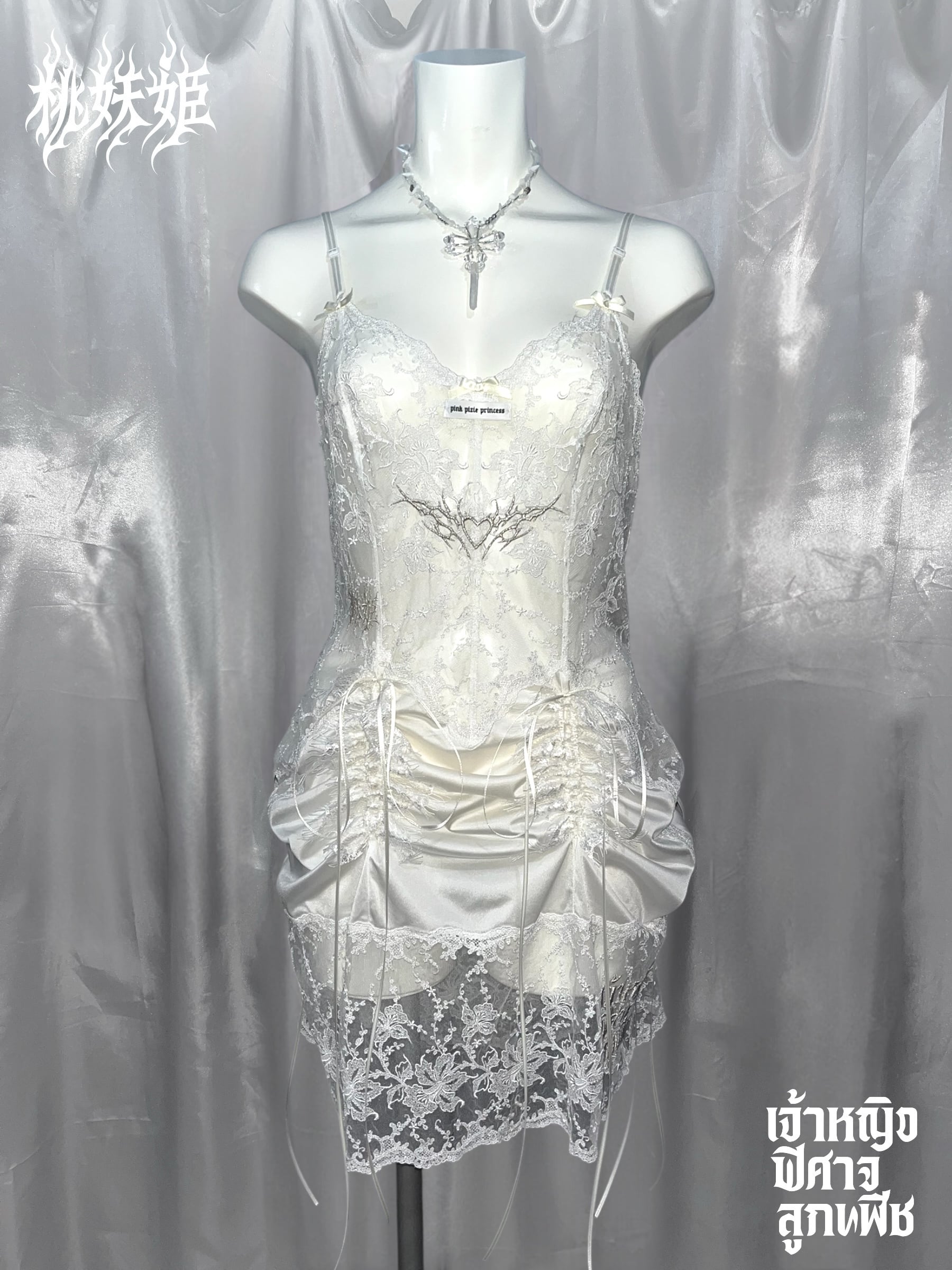 PPP Heavenly Vice Slip REMAKE lingerie / White lace × Silver