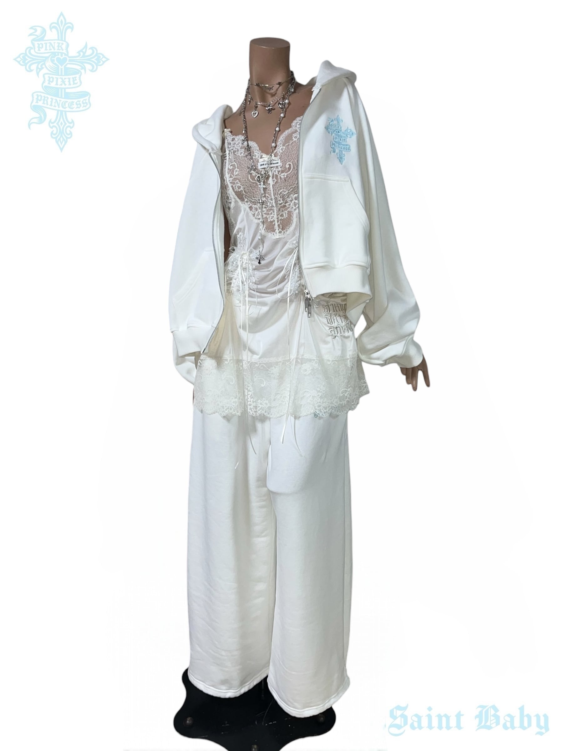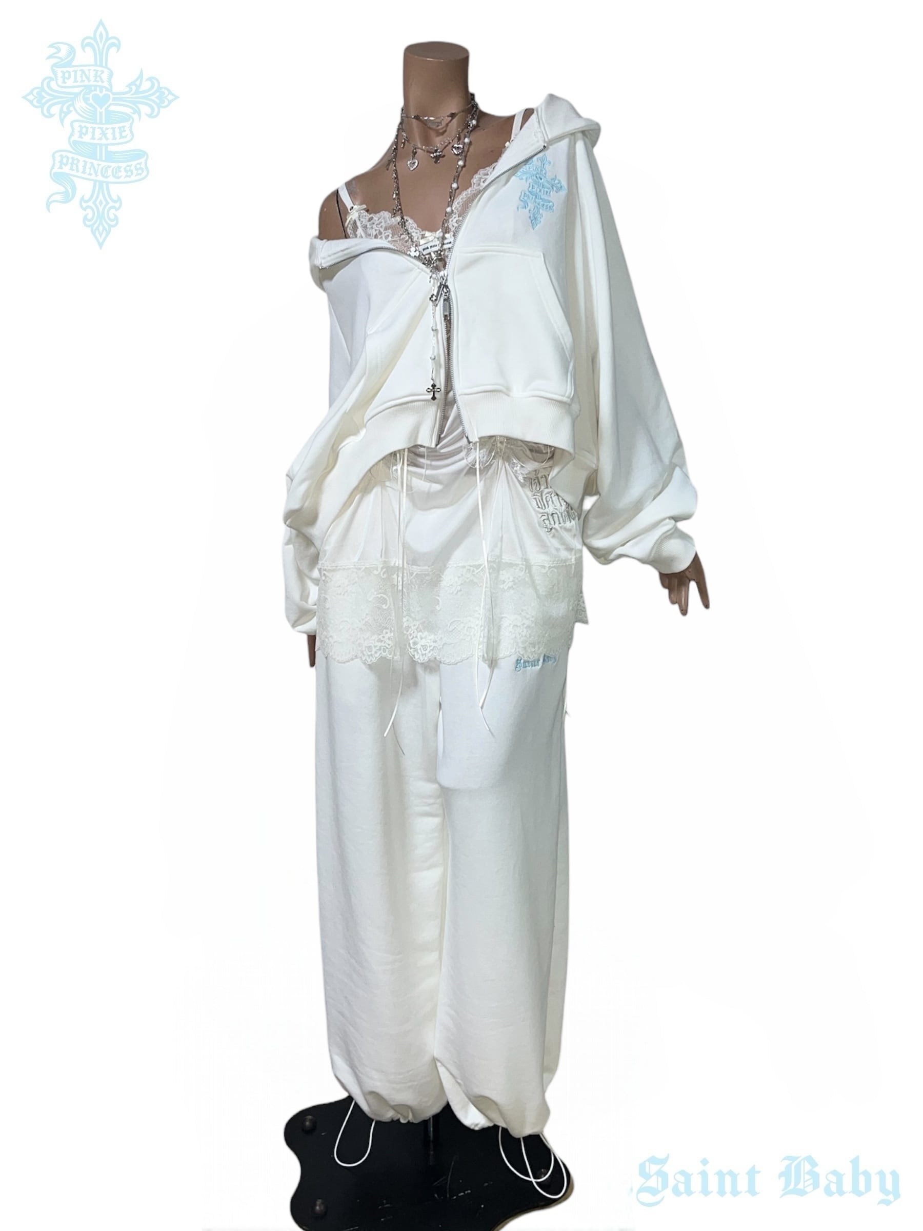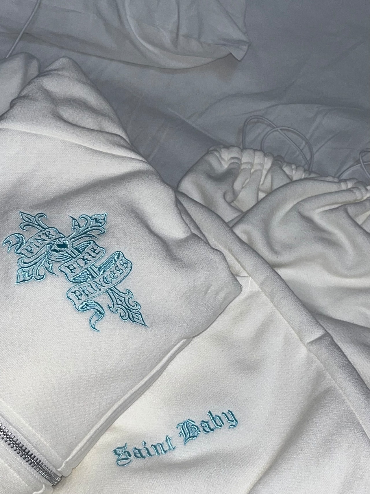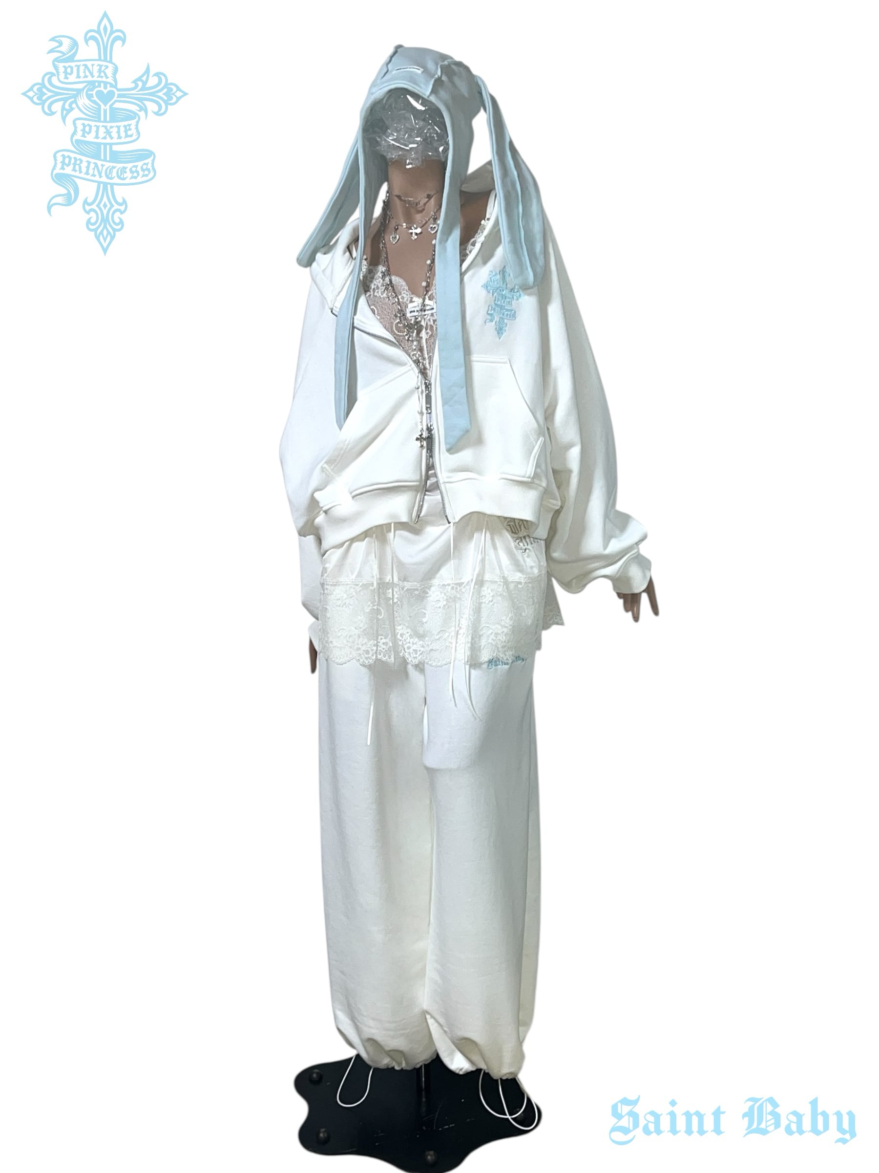 PPP Saint Baby Embroidered Sweat Pants / off-white × baby blue