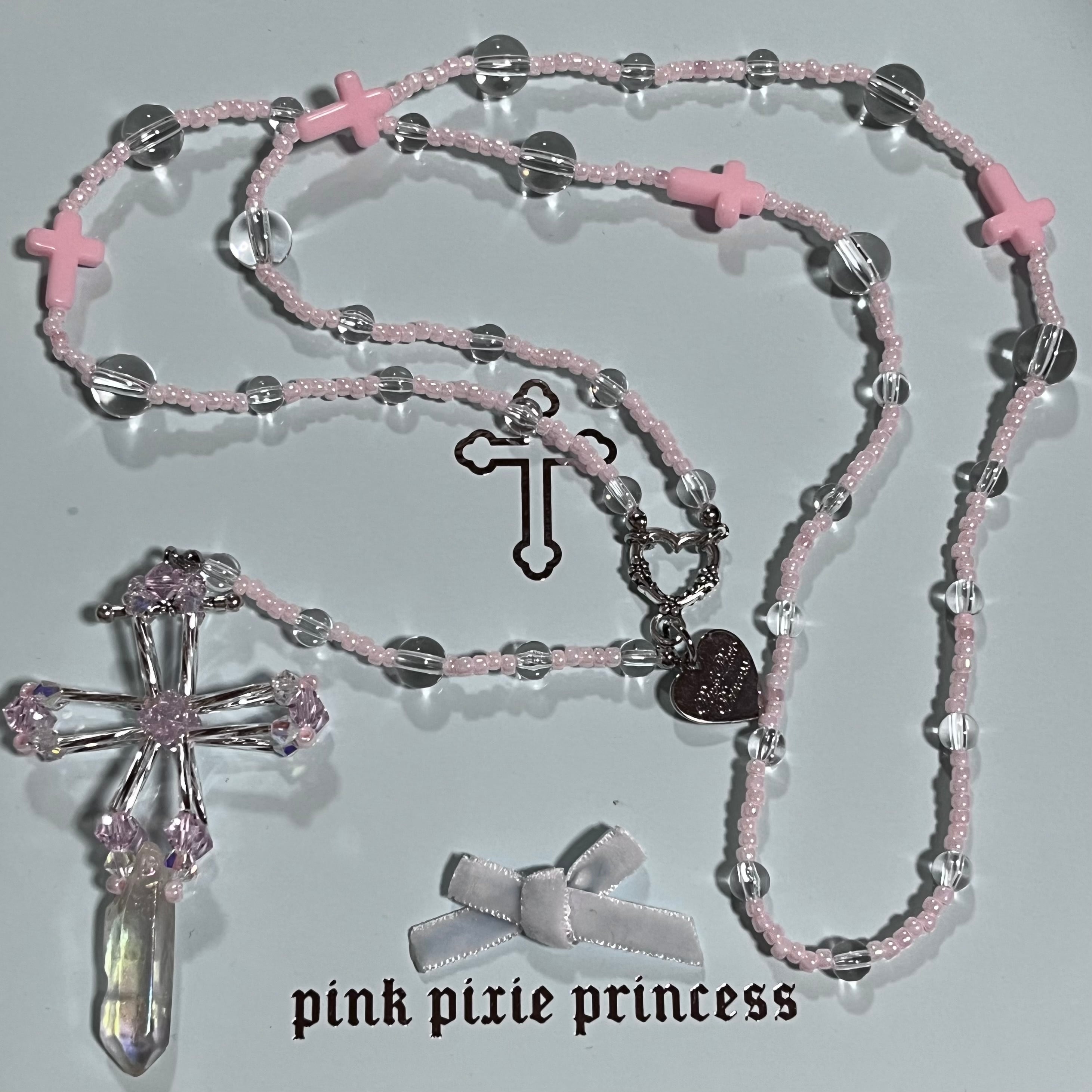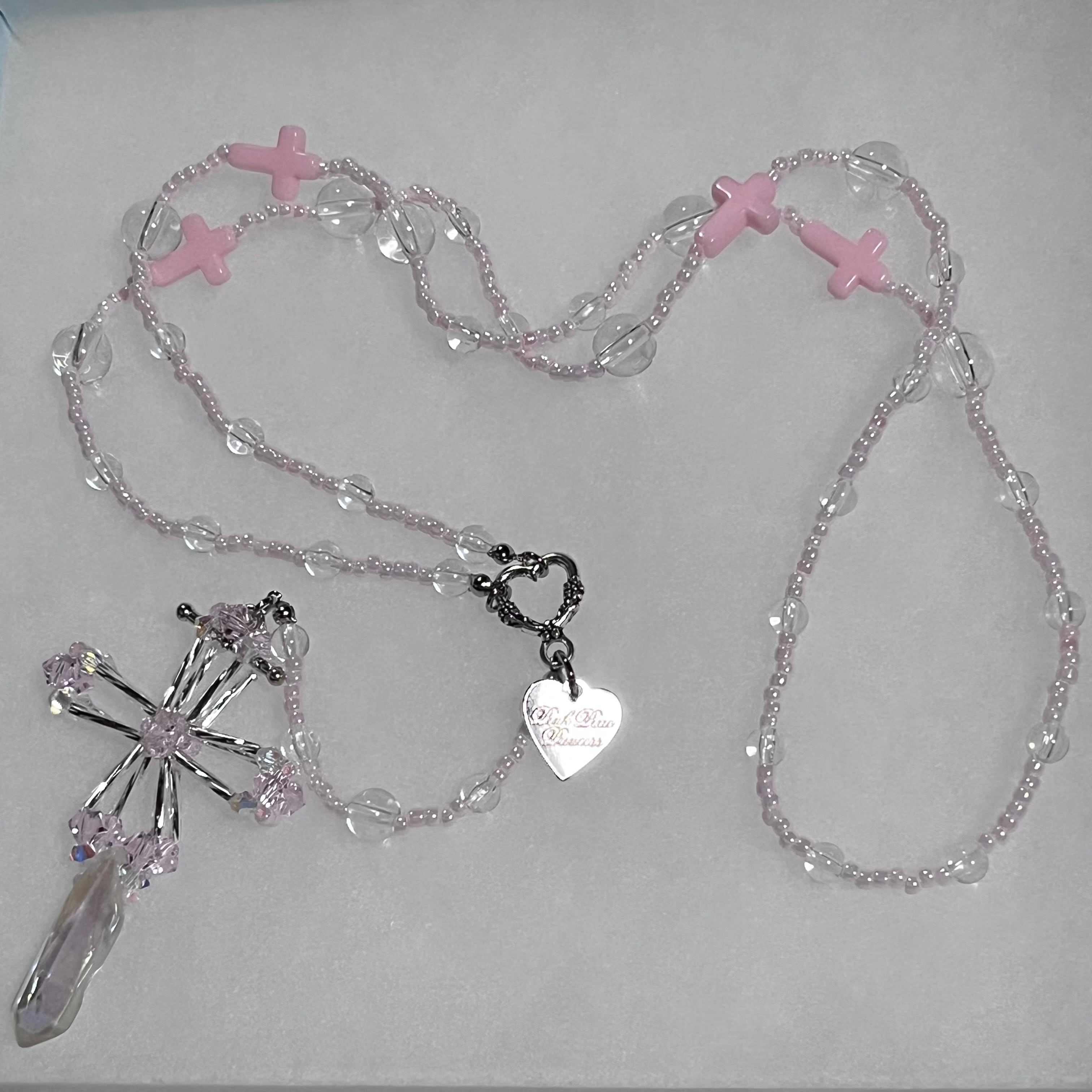 PPP jesus rosary necklace / baby pink