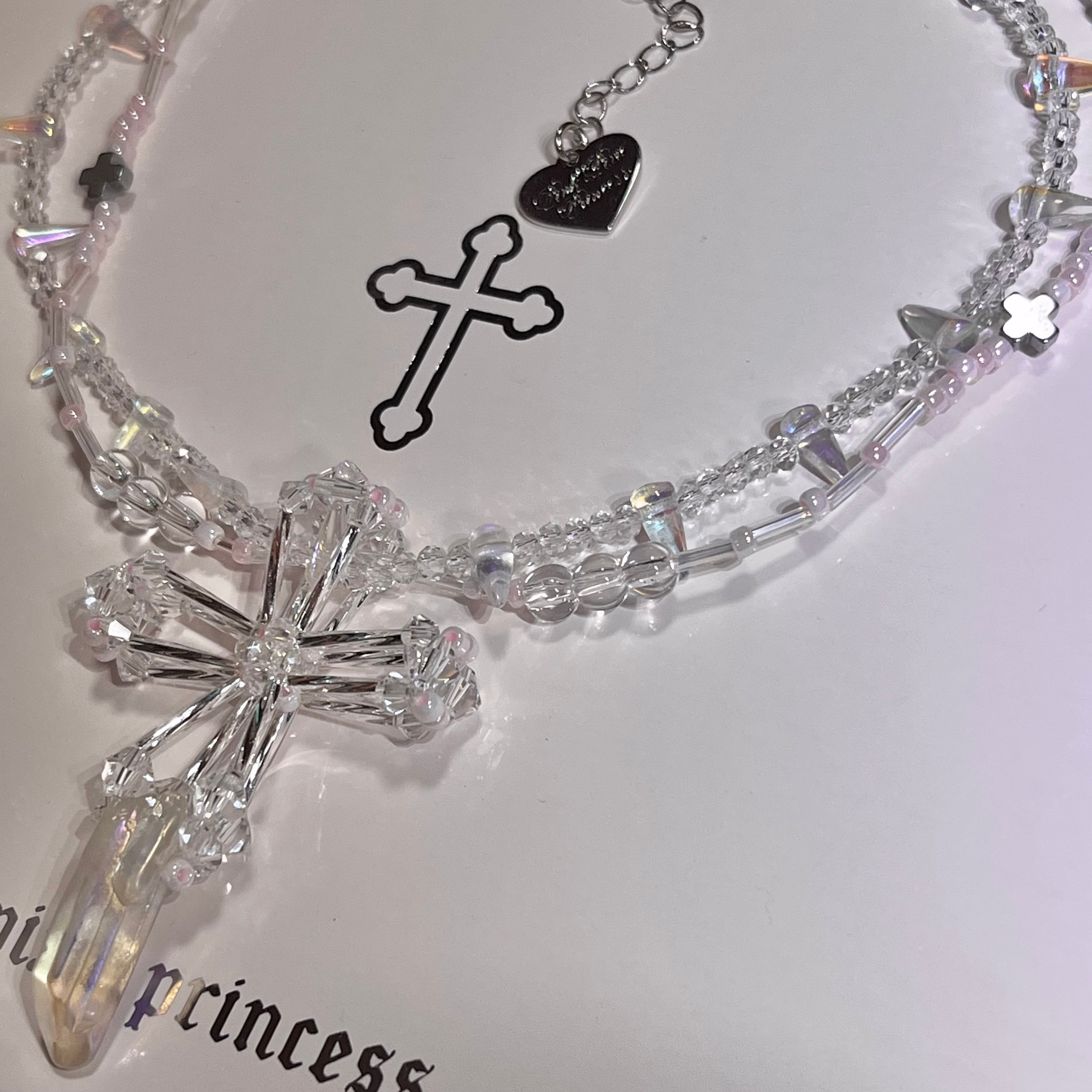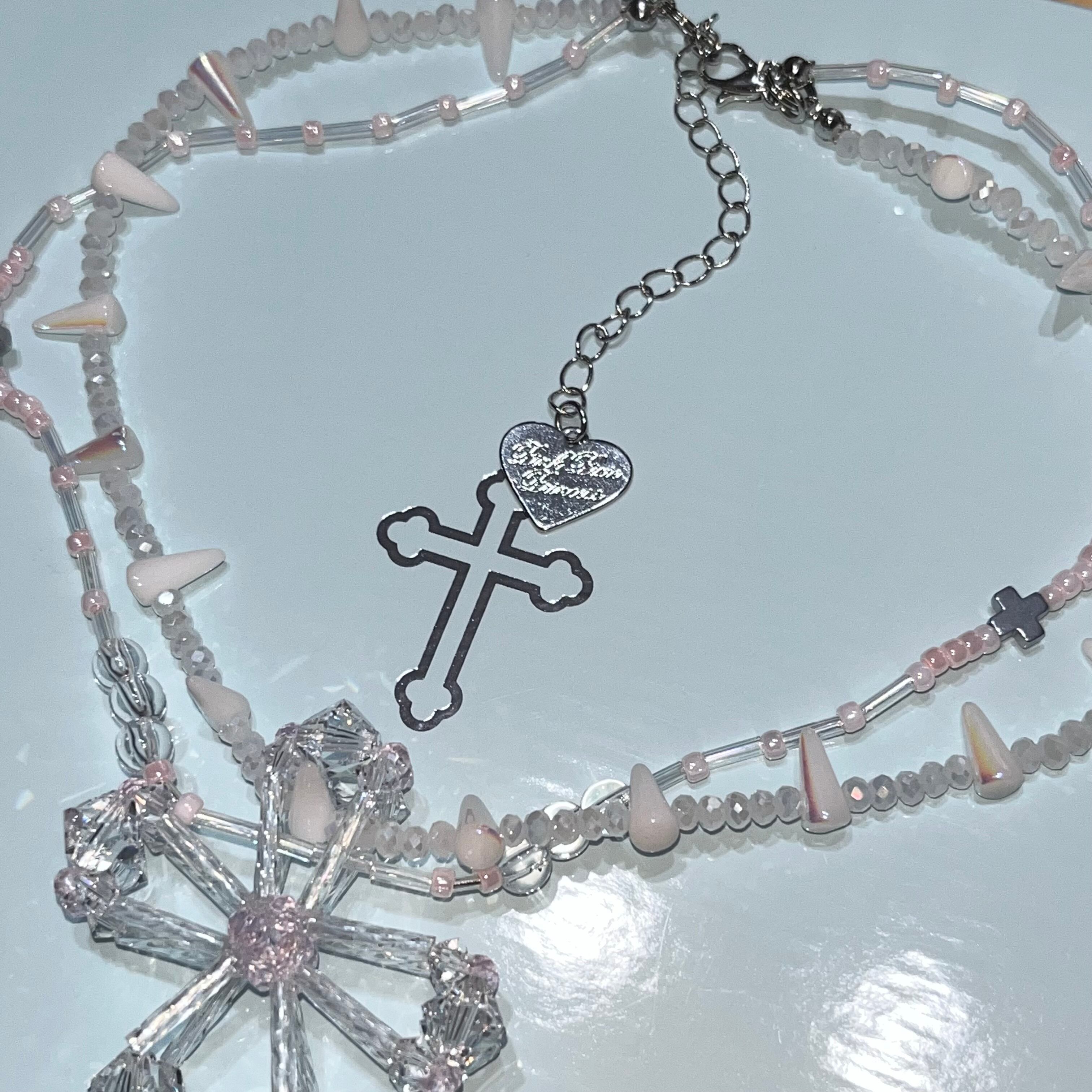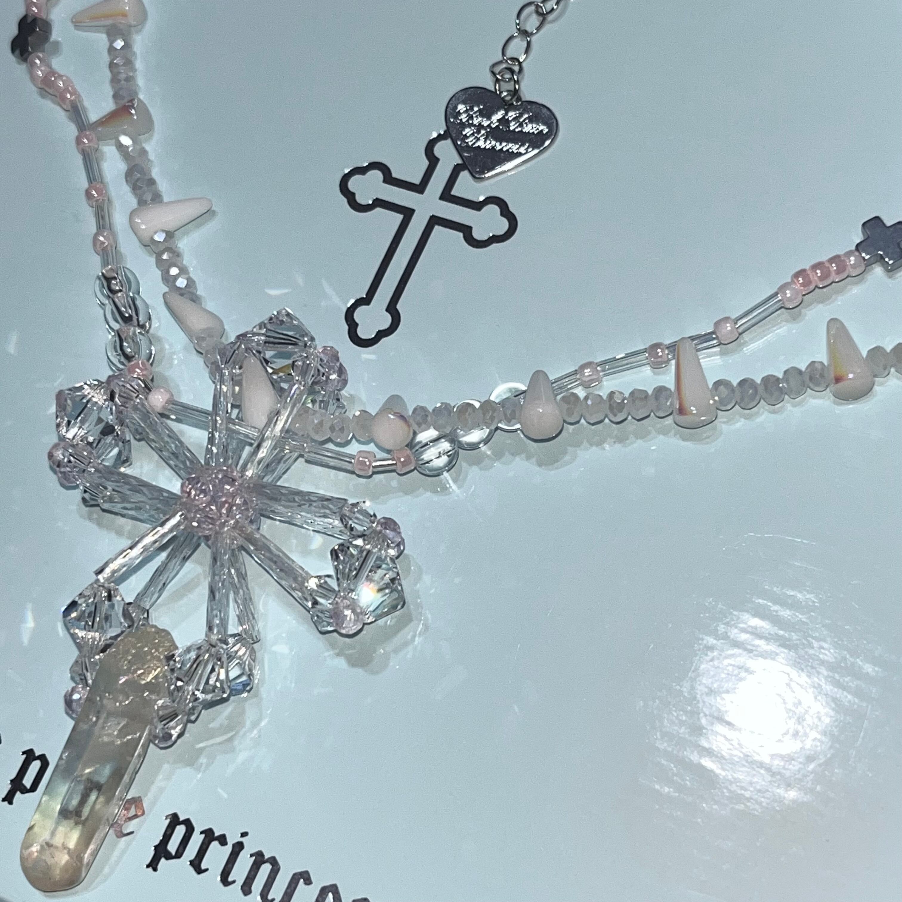 PPP crystal jesus necklace / clear × baby pink