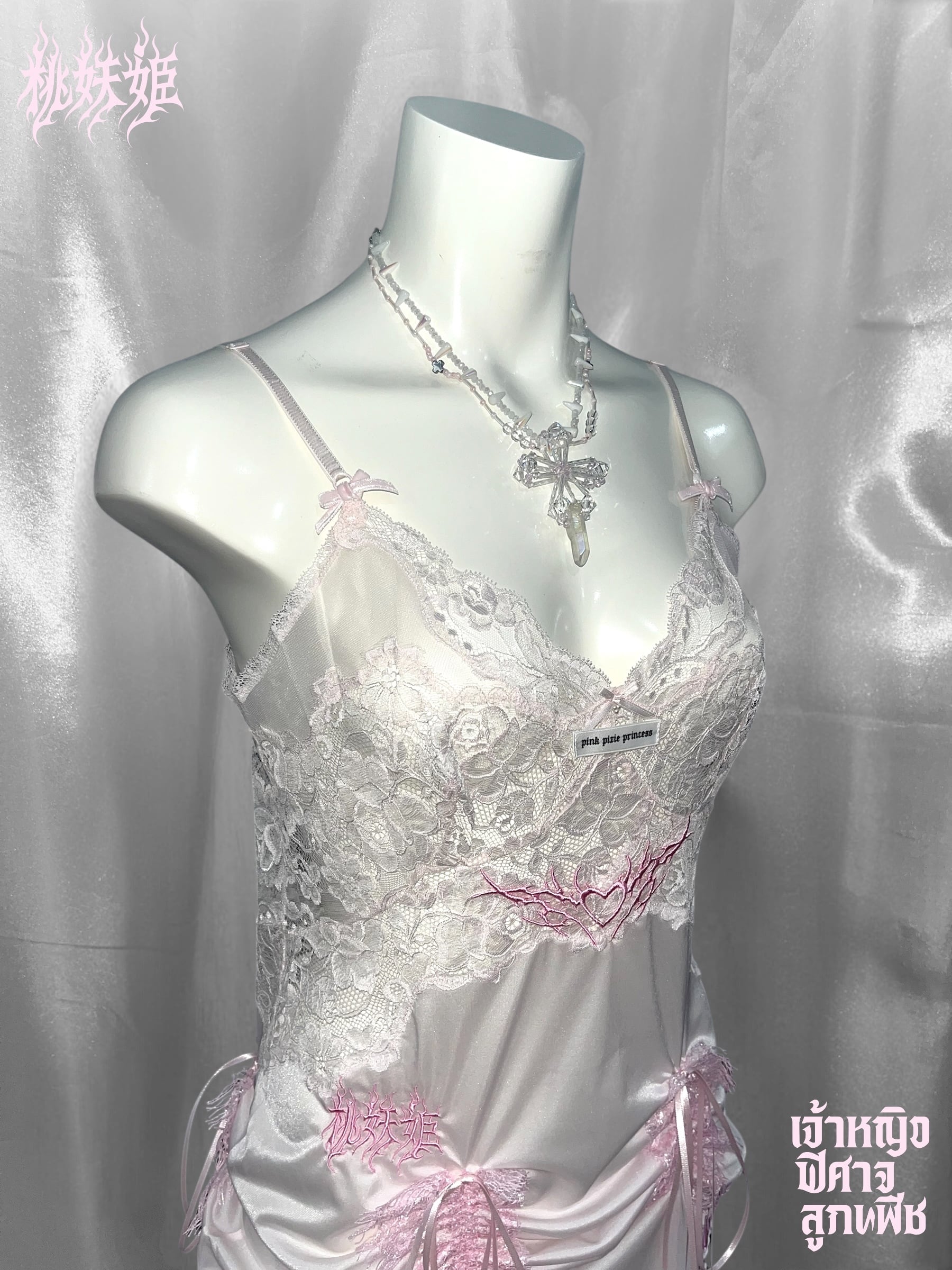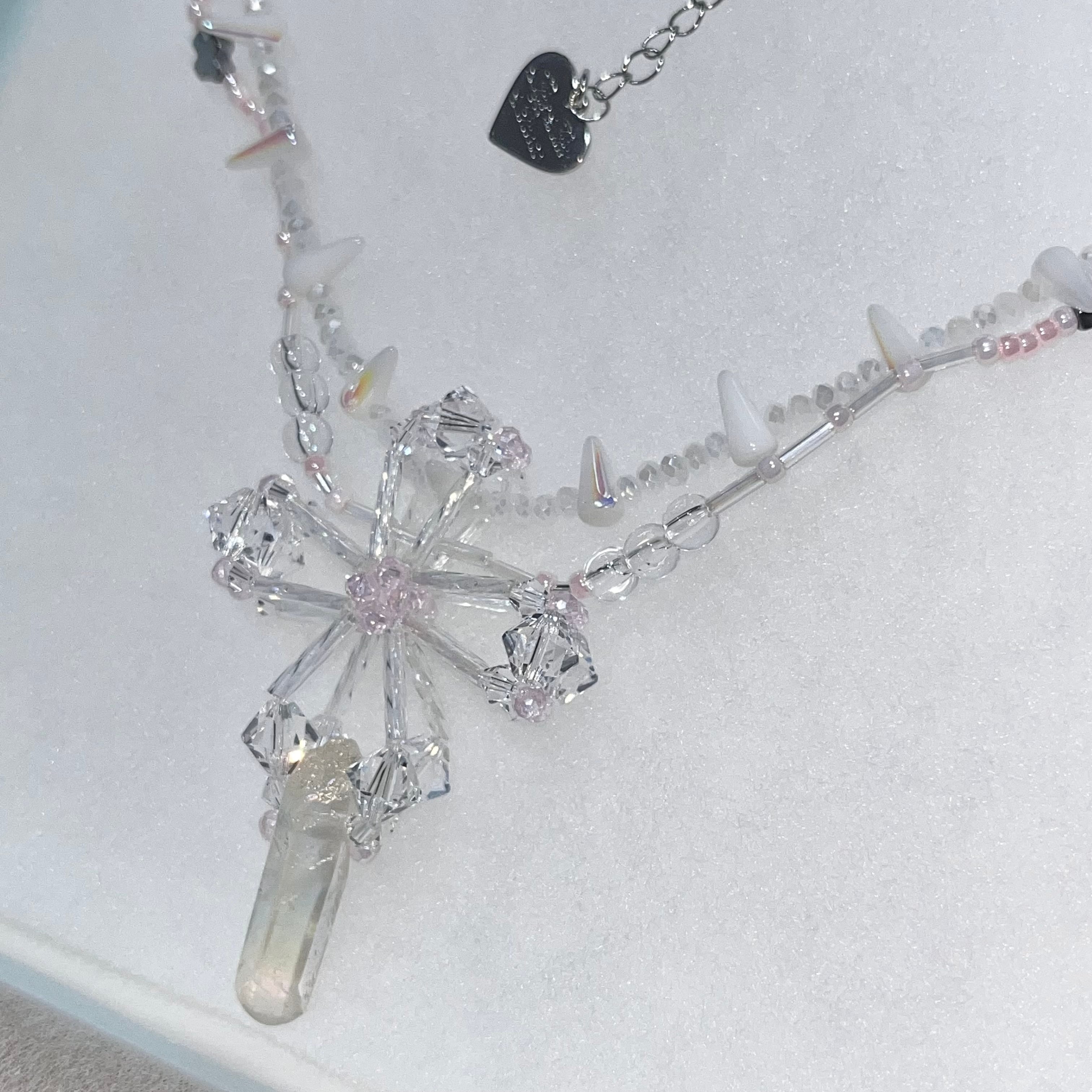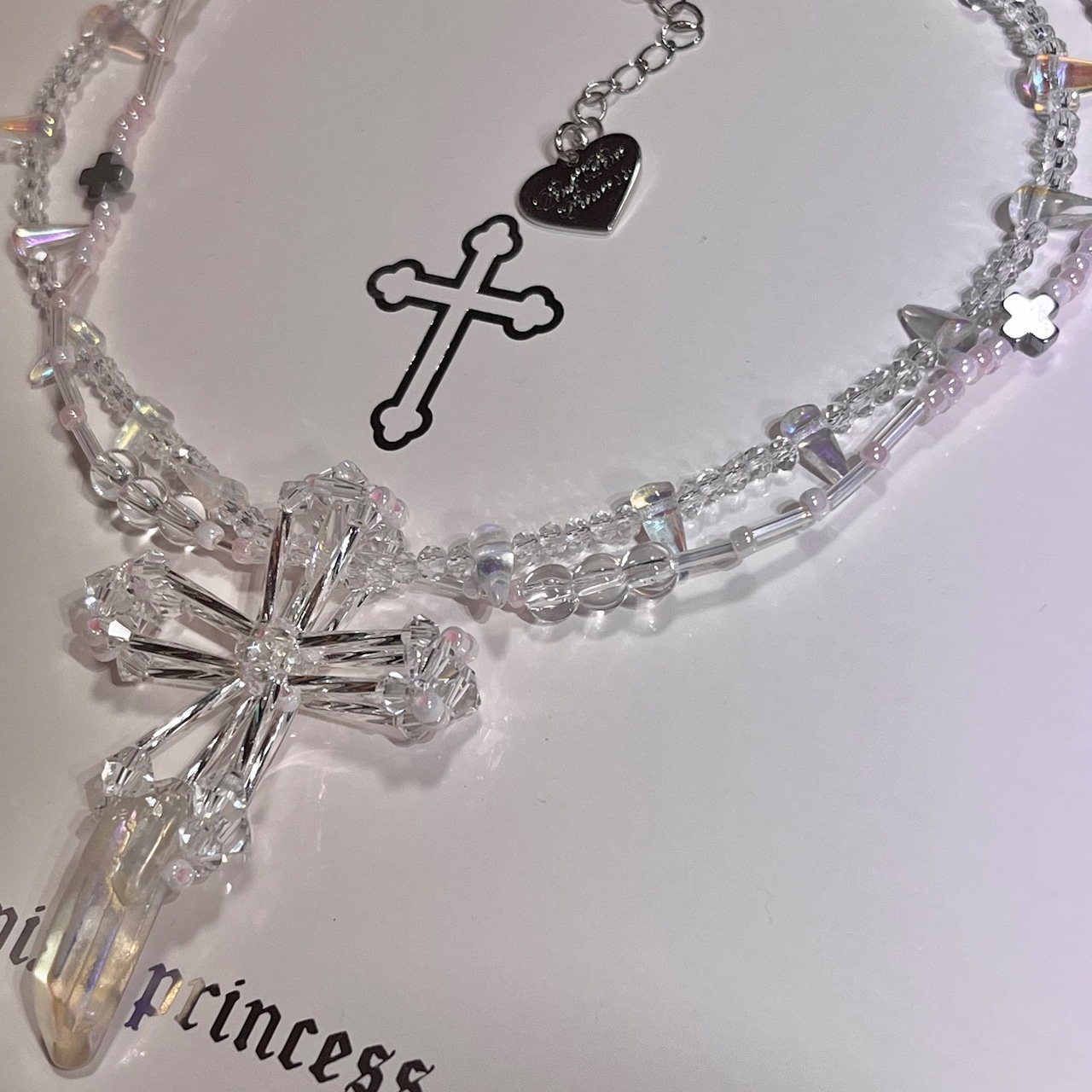 PPP crystal jesus necklace / clear × baby pink