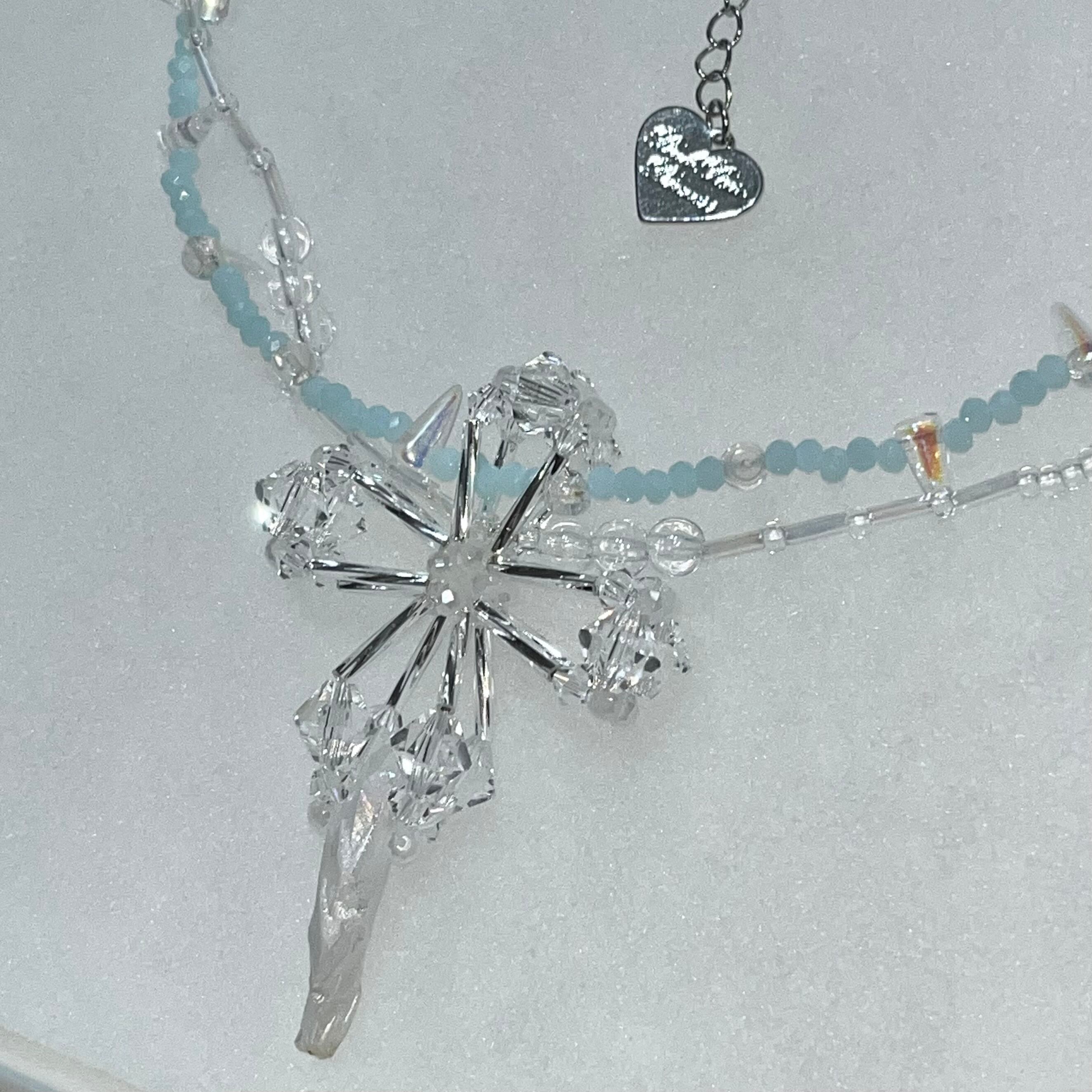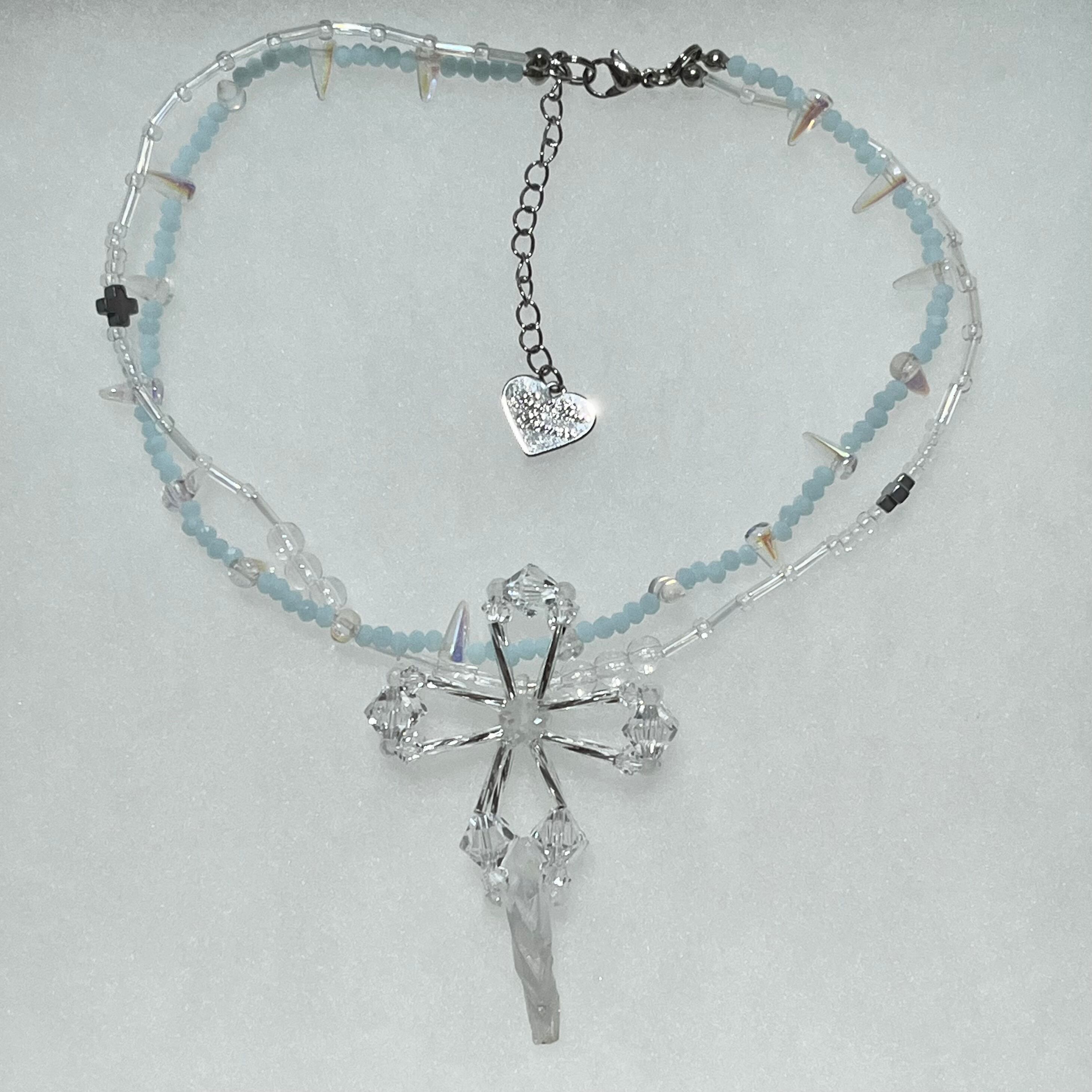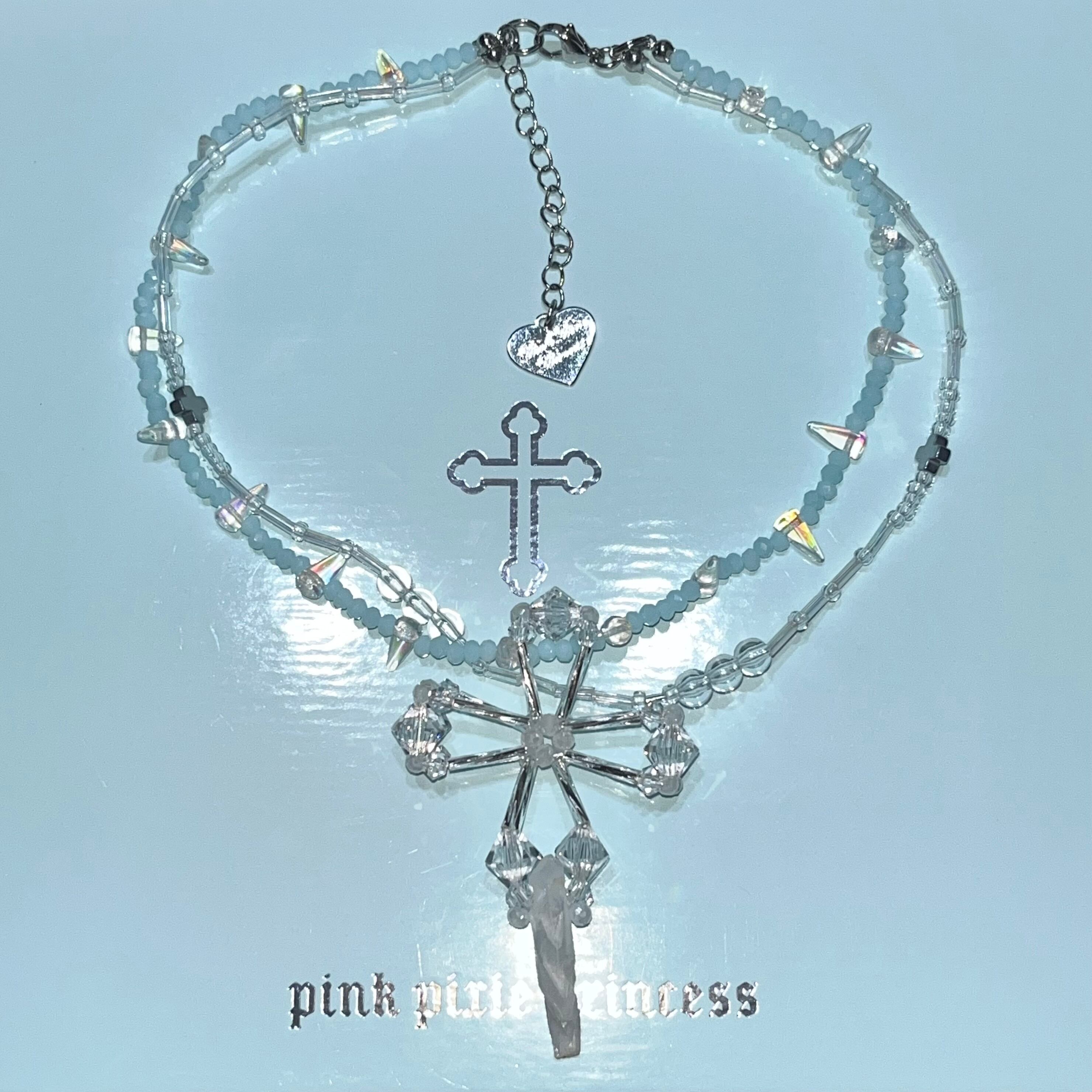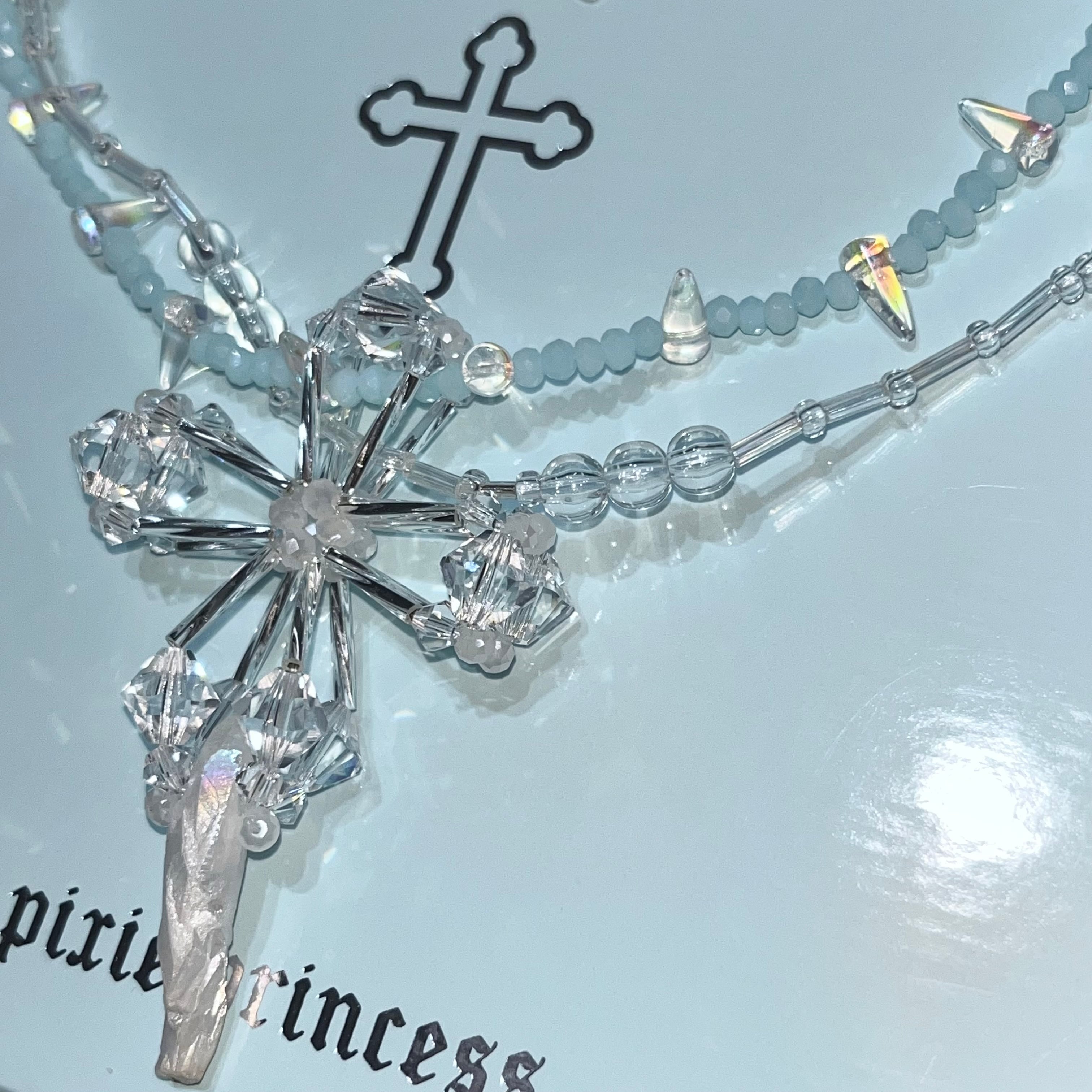 PPP aurora crystal jesus necklace / silver × baby blue